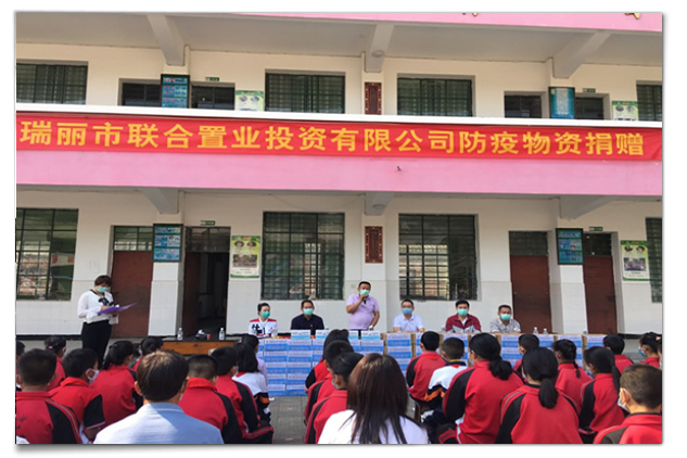 能投聯(lián)合外經(jīng)瑞麗市聯(lián)合置業(yè)投資有限公司在瑞麗市防疫消毒物資緊缺和學(xué)生開學(xué)在即的情況下,得知瑞麗市姐勒中心小學(xué)防疫物資出現(xiàn)嚴(yán)重短缺,已對學(xué)校正常開學(xué)工作造成影響。聯(lián)合置業(yè)公司主動履行企業(yè)政治、經(jīng)濟(jì)、社會責(zé)任,積極踐行集團(tuán)核心價值觀,通過多方籌措,采購了一批醫(yī)療防疫物資,包括溫度計(jì)400支、洗衣皂2000塊、洗手液500瓶、84消毒液60公斤,有效緩解了姐勒中心小學(xué)防疫物資短缺的問題,保障了學(xué)校師生的健康。