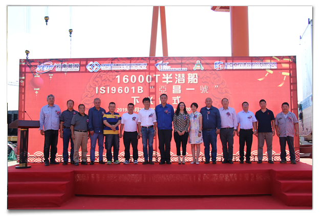 舉力半潛船成功下水剪香檳儀式合影2019年9月20日上午10點(diǎn)30分,聯(lián)合外經(jīng)為亞洲知名工程建設(shè)集團(tuán)設(shè)計(jì)建造的第一艘16000噸舉力半潛船,船名“亞昌一號(hào)”在南...