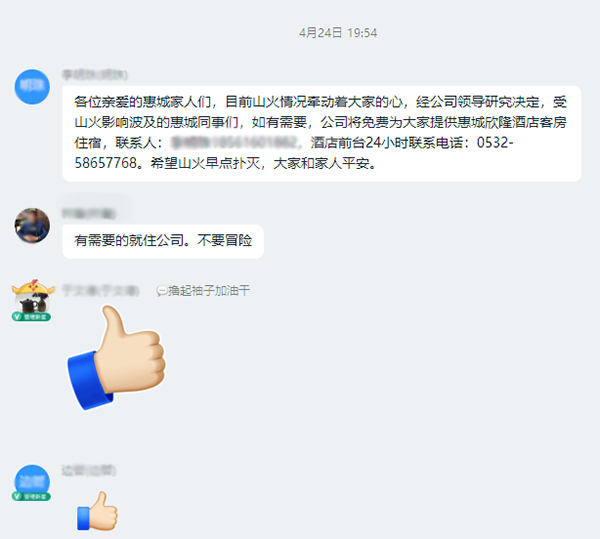 近?日,青島西海岸新區(qū)小珠山發(fā)生一起森林火災(zāi),因期間高山陣風(fēng)風(fēng)力陡增、山高地險(xiǎn),給火災(zāi)撲救造成困難。4月24日晚,山火已蔓延至海爾大道附近,公司有不少員工居住在這一區(qū)域,山火的繼續(xù)蔓延嚴(yán)重威脅到他們的安全。[ 查看更多 ]
